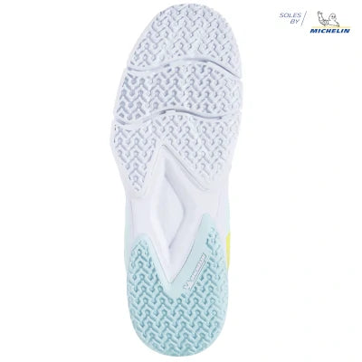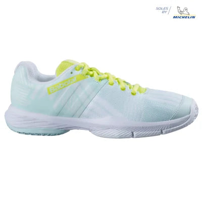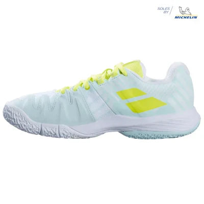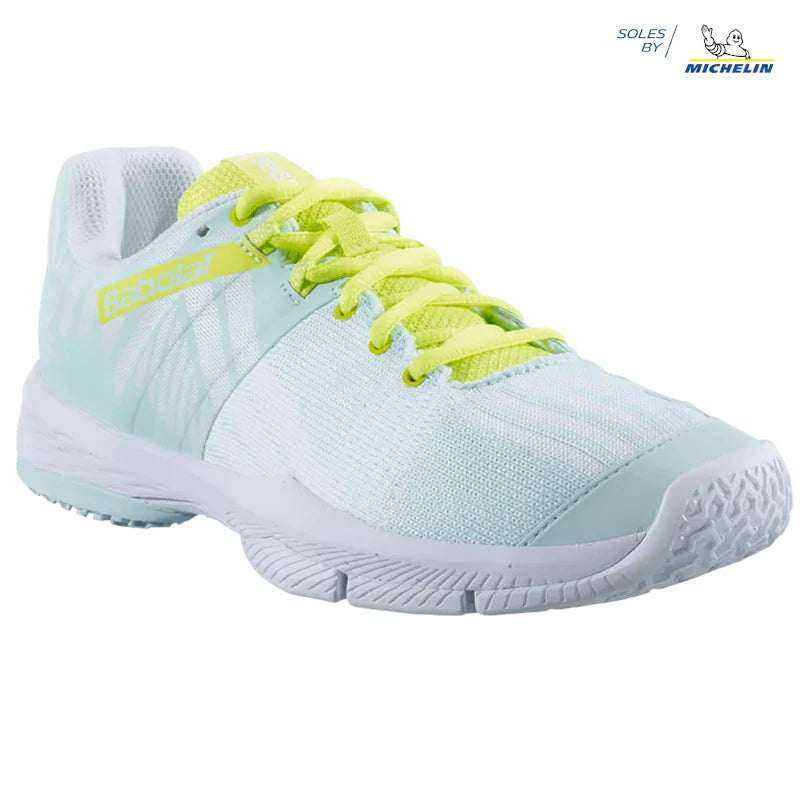 Las Zapatillas Babolat Sensa Woman fabricadas con malla tejida y con refuerzos laterales para mejorar la comodidad en su juego.