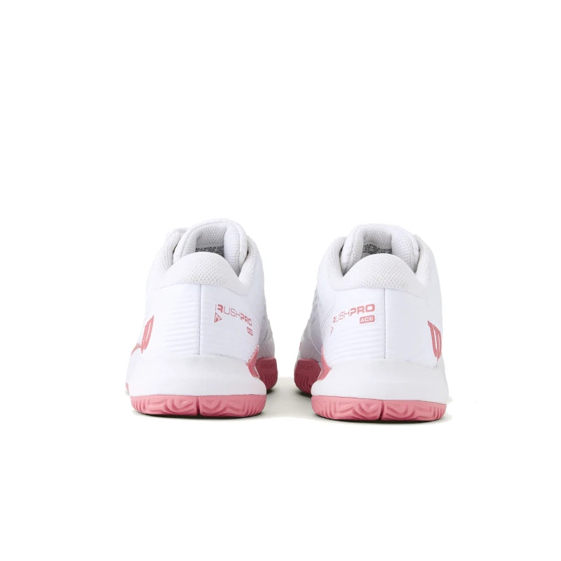 Las Zapatillas Wilson Rush Pro Ace JR 2025 White/White/Mauveglow, este calzado esta diseñado para que los jugadores mas pequeños de la casa obtengan la mayor comodidad en la pista, además de tener un excelente agarre y sujeción de pie.